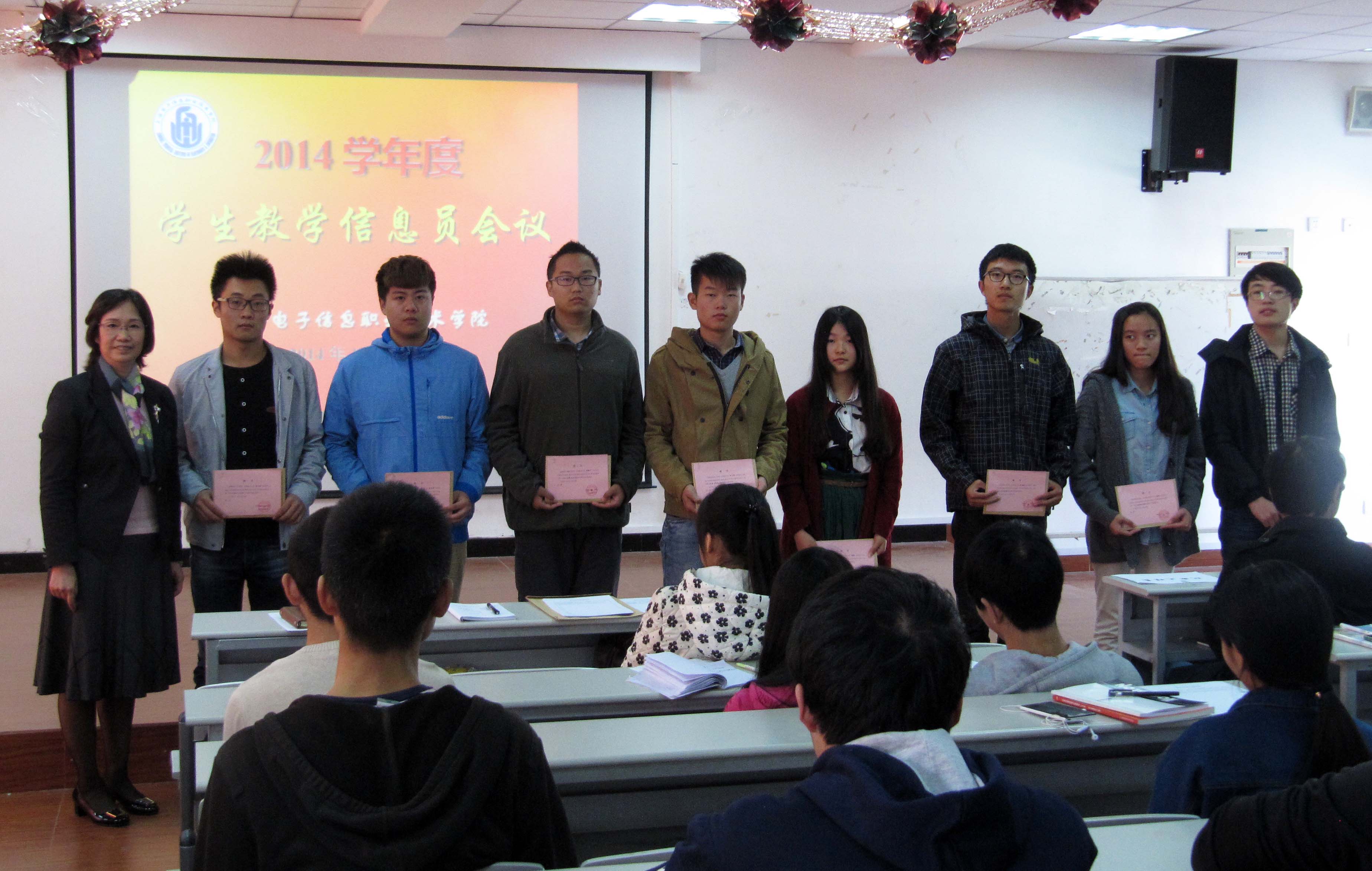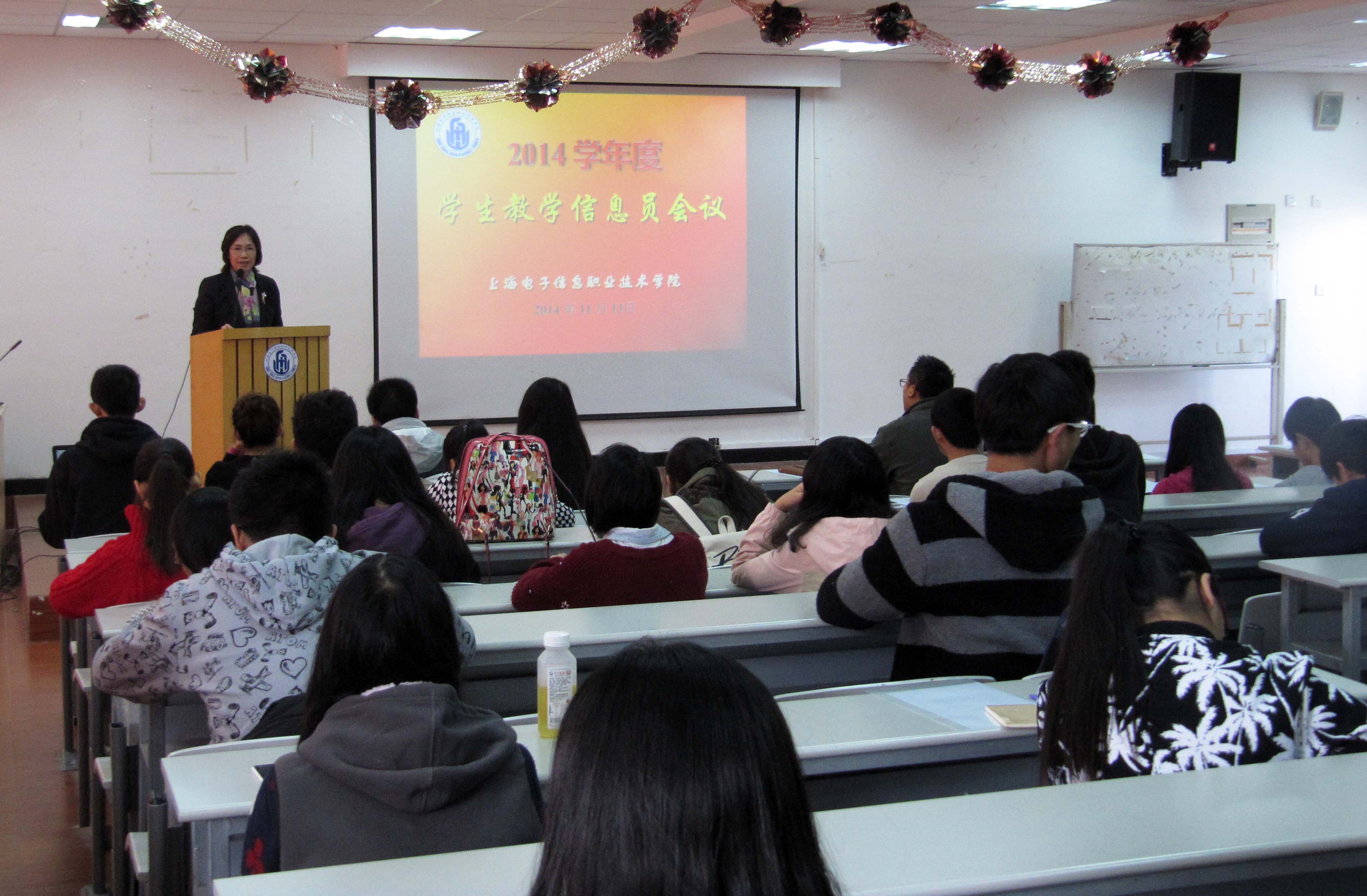 20141113日中午,我院督导室在I402教室组织召开了学生教学信息员会议,督导室主任戴玉珍老师、颜敏燕老师及全院学生教学信息员出席了本次会议。