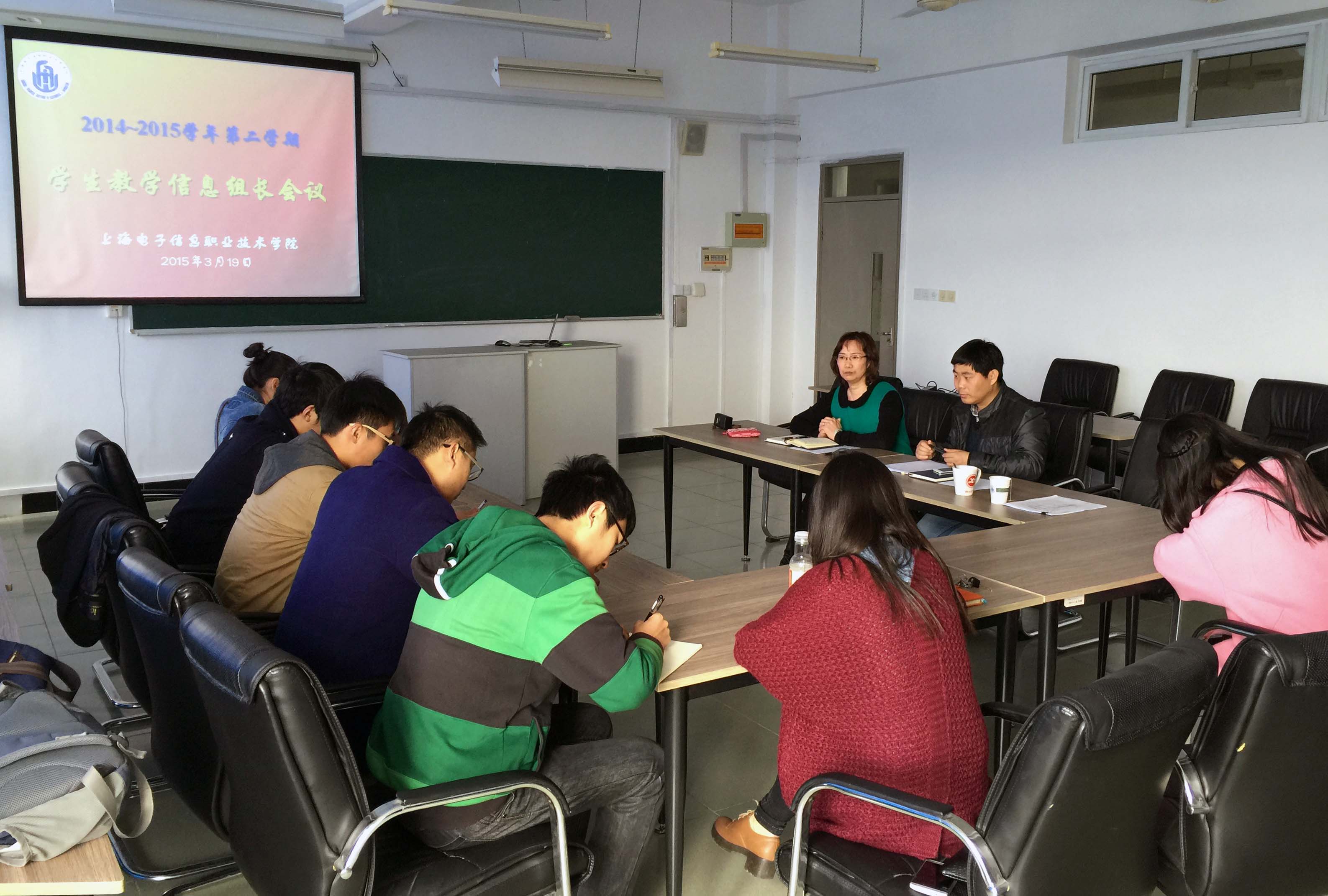 2015年3月19日,督导室在奉贤校区组织召开了学生教学信息员组长会议。会议由督导室主任戴玉珍老师主持,院学生会学习部部长与各系(二级学院)学习部部长(兼学生教学信息组组长)出席了会议,并邀请了宋立峰老师参会。