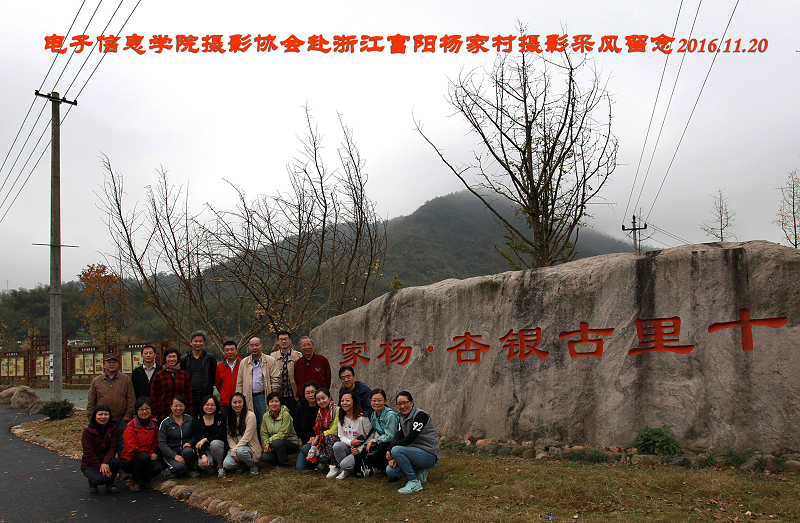 2016年11月19日至20日,在学院工会的大力支持下,学院摄影协会一行20人赴浙江临安指南村、富阳杨家村举行"银杏秋韵"摄影采风活动。指南村是一座有着数千年历史的古村。到处有千百年树龄的古木林。每年深秋,黄色银杏和红色的枫林五彩缤纷,被誉为“摄影爱好者的天堂”。杨家村拥有数百棵百年以上的古银杏,以“满村尽带黄金甲”之盛况吸引众多摄影爱好者前去采风。两天的摄影创作活动让大家流连忘返,新老会员们冒着霏霏细雨边拍摄、边在一起交流摄影技术和体会,深感不虚此行。本次摄影采风活动使大家开阔了眼界、提高了摄影技术、陶冶了艺术情操。(电子信息学院摄影协会)
