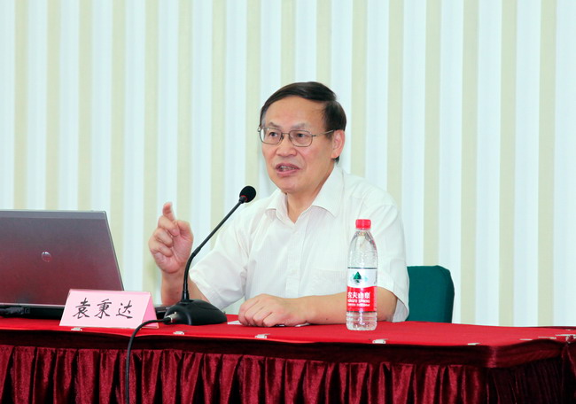 袁秉达教授以“世情、国情、党情发生深刻变化,我们面临前所未有的机遇和挑战”这一背景与形势分析入手,为全体党员进一步阐述党的十九大召开的重大意义。他说,习总书记“7·26讲话”为十九大奠定了主题、基调和目标,即高举中国特色社会主义伟大旗帜,为决胜小康实现中国梦而奋斗。中国特色社会主义是近40年来党的全部理论与实践的主题,伟大复兴、“两个一百年”是我党始终坚持的奋斗目标。中国特色社会主义进入了新的发展阶段,要求我们要积极拓展新视野、牢牢掌握习近平治国理政新理念新思想和新战略。最后袁教授带领大家详细解读了习总书记“7·26讲话”中有关推进“四个伟大”,树立“四个自信”与党建“六个更加”等内容。