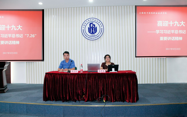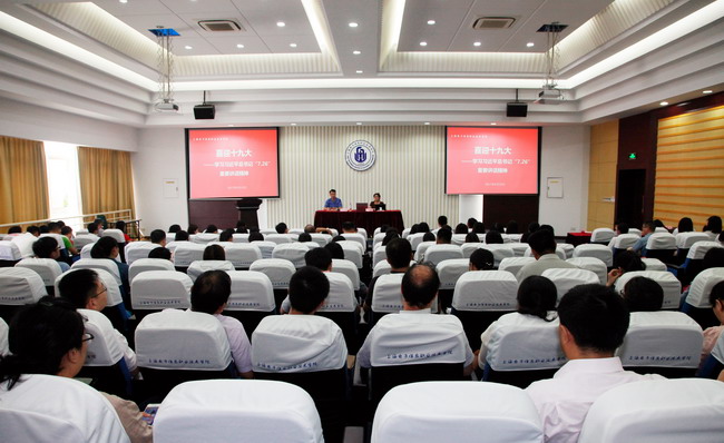 2017年9月19日,学校召开全体党员大会,邀请上海市委党校、上海行政管理学院科学社会主义教研部主任袁秉达教授来校作《高举旗帜 决胜小康 为实现中国梦奋斗 ——习总书记“7·26讲话”精神解读》专题讲座,深入学习习近平总书记讲话精神。学校党政领导以及全体党员参加大会。