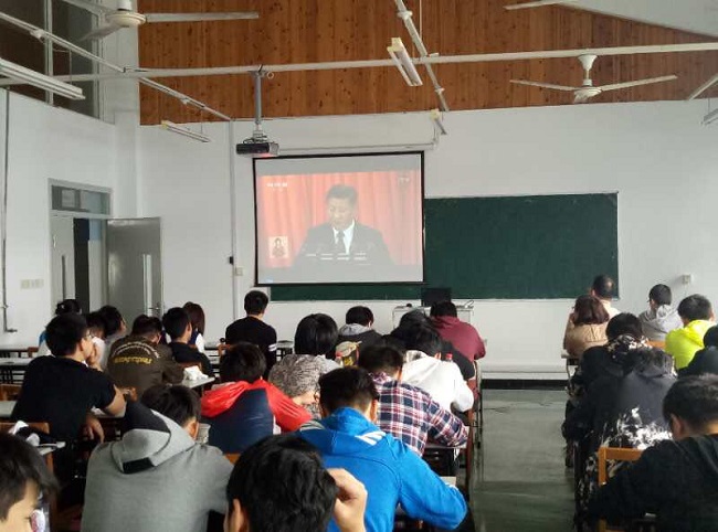 学校今天上午9:00在徐汇、奉贤、闵行三个校区的会议室、办公室、教室、实训室等多处组织党委中心组、12个党总支、26个党支部观看了中国共产党第十九次全国代表大会开幕式,聆听了习总书记的报告,共有278名党员及党外人士和师生观看了直播,反响热烈:
