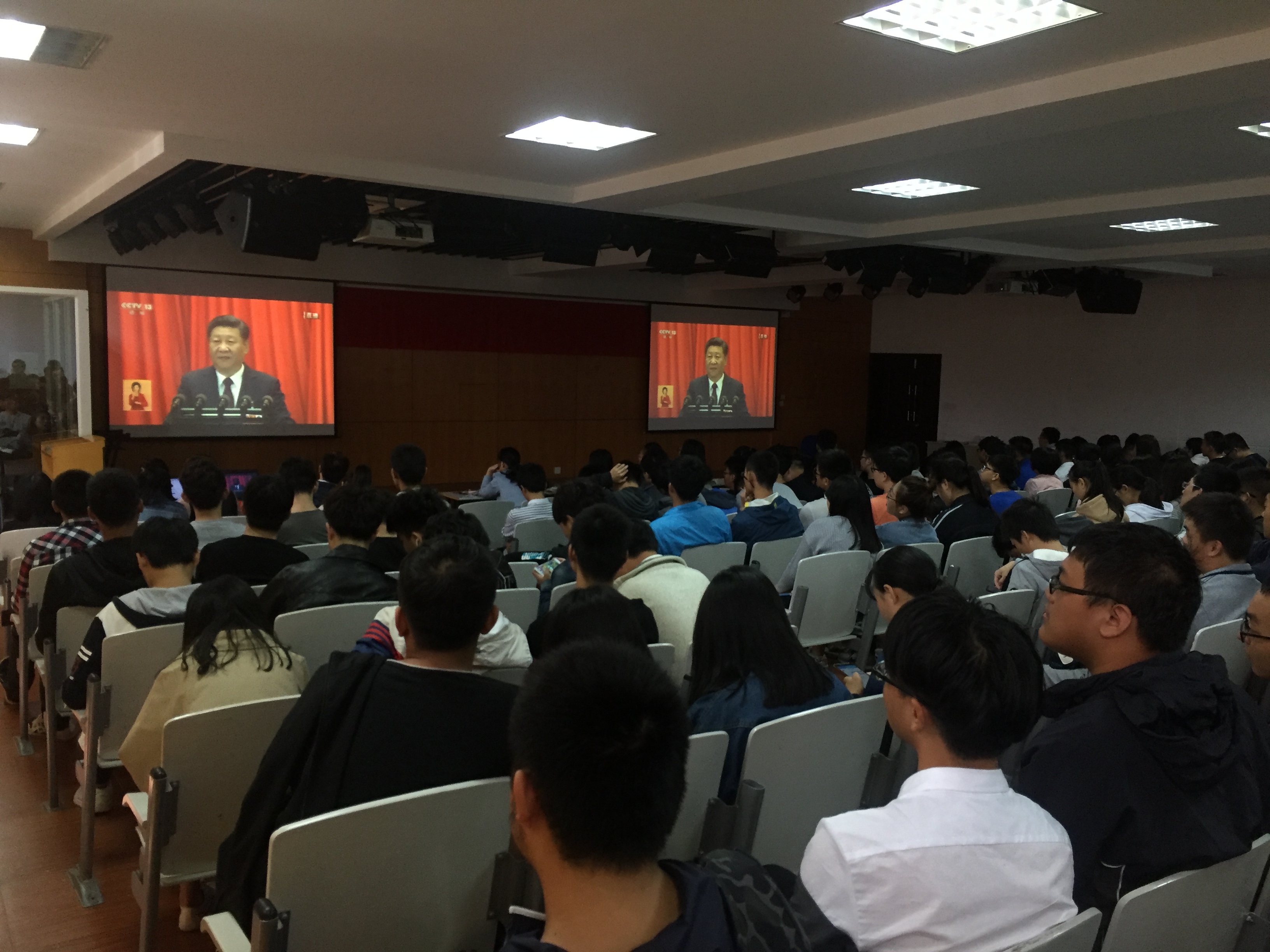 10 月 18 日上午9时整,在庄严雄壮的国歌声中,肩负着全党重托和全国人民期盼,举世瞩目的中国共产党第十九次全国代表大会在北京人民大会堂隆重开幕。为了解十九大盛况,及时掌握十九大精神,掀起学习贯彻大会精神热潮,通信学院党总支积极响应学校党委号召,发动全院师生通过网络、广播、电视收听收看十九大开幕盛况,并创造条件组织师生代表在I-401集中收看十九大开幕直播。
