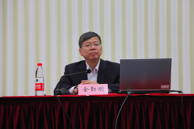 金勤明处长以“用十九大精神统领统战工作 助推学校发展”为题作报告,金处长首先对党的十九大报告进行了简要解读,他说,中国特色社会主义进入到新时代,这是贯穿十九大报告的主线,紧跟新时代就是要用十九大精神统领各项工作,统领统战工作,对我们统一战线而言,就是要深刻领会准确把握习近平总书记对统一战线的要求,坚决维护以习近平同志为核心的党中央集中统一领导,不忘初心、牢记使命,自觉在思想上政治上行动上同以习近平同志为核心的党中央保持高度一致。他从新形势下高校统战工作的重要性、高校统战工作的任务、加强高校及院系统战工作等三个方面作了报告。
