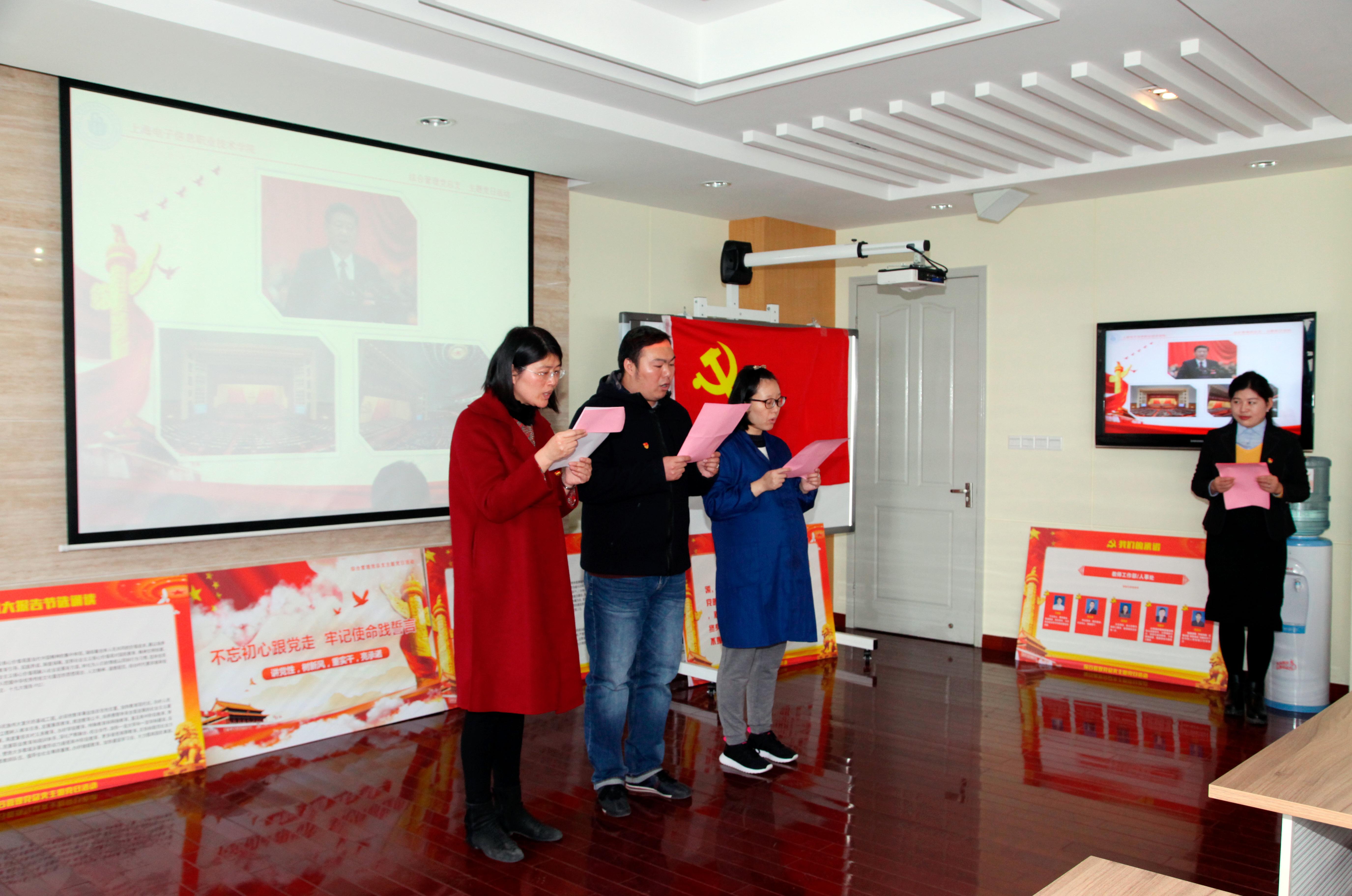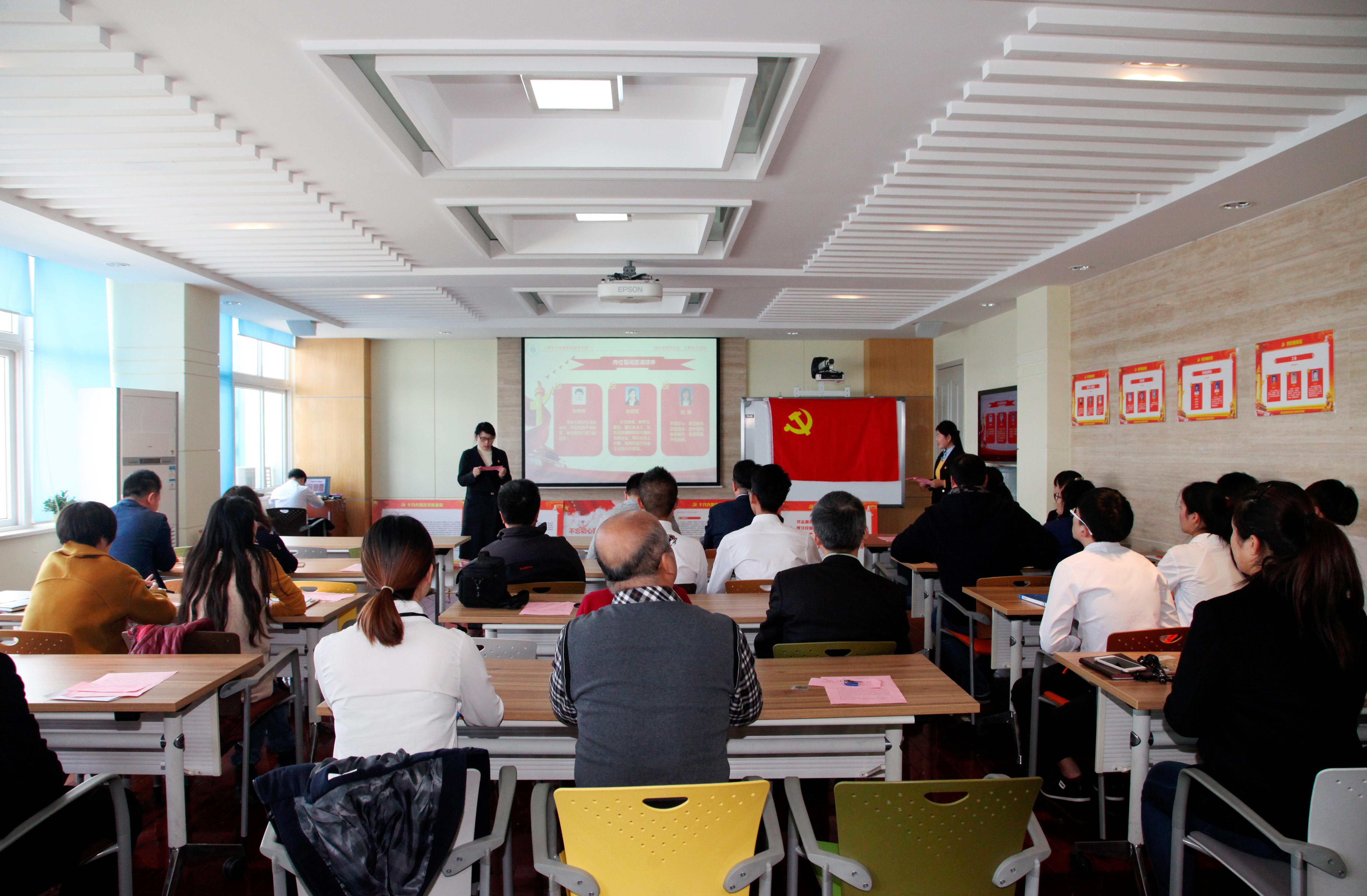 副书记顾剑锋还指出,全体党员应持续认真学习十九大报告精神,做到“四个结合”,第一,与党建工作结合,以十九大精神为引领,把组织建设推上新的台阶;第二,与国家战略、职业教育的发展结合,以教育为纽带,促成2020年全面建成小康社会;第三,与三年创新行动计划、专业诊断与改进等学校办学重点工作结合,提升人才培养质量和办学质量;第四,与教职工本职工作结合,立足本职岗位,为学校发展做出贡献。通过做好“四个结合”工作,将十九大会议精神落到实处,为学校今后迈出更加坚实的步伐,为新时代、新征程上的新成就做出卓越贡献。