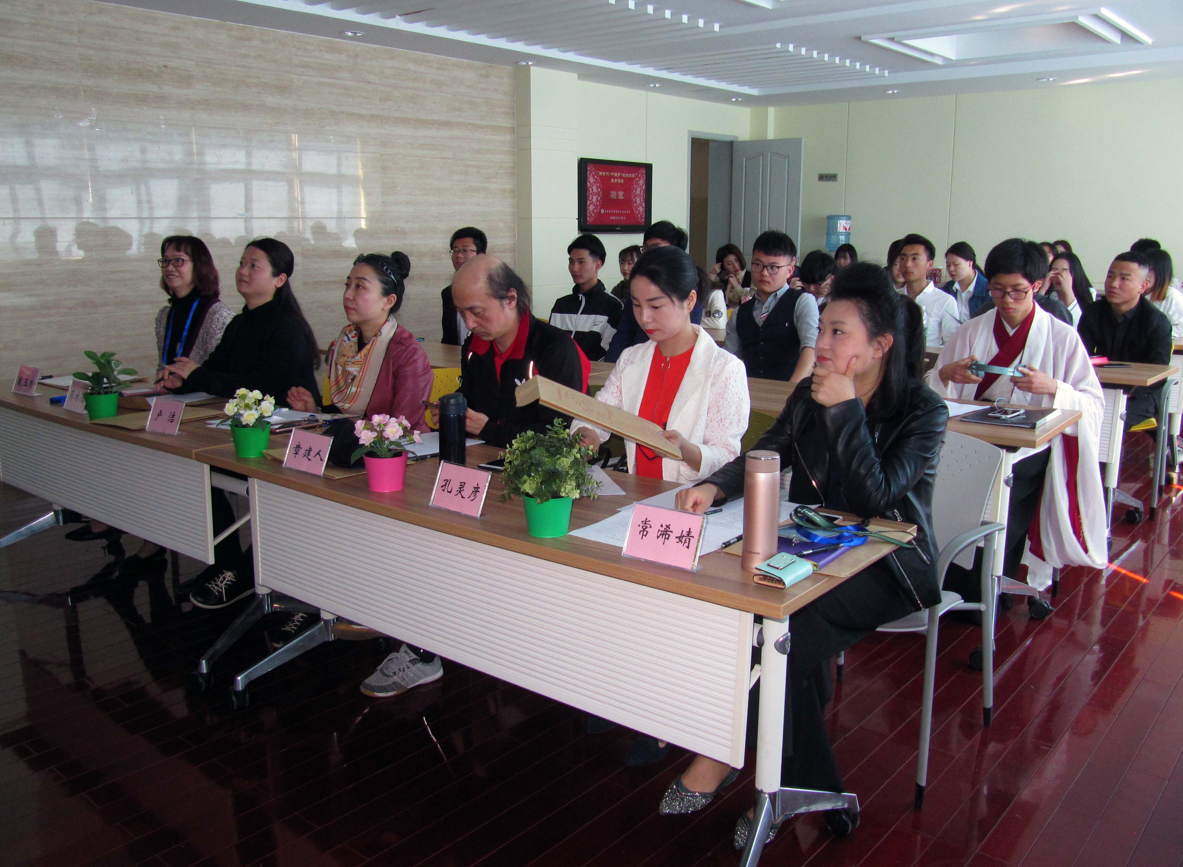 | 2018年4月10日,“新时代•中国梦•我的故事”学生主题演讲展示活动决赛在奉贤校区A205、A210举行。有20个作品参加决赛,其中18个个人作品、2个团队作品。决赛评委由5人组成,其中3名校外专家,分别是全国青少年语言艺术素质测评(上海)中心副主任孔灵彦老师,上海小白帆文化发展公司、上海协和双语学校艺术团总经理卢洁老师,上海音乐家协会会员、金山区青少年活动中心教师章建人老师。