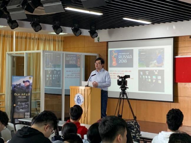 来自索尼(中国)有限公司的工程师董锐超从画面和声音元素这两方面出发,讨论拍摄的注意点,并提供了许多实用的小贴士。并且分享了几部各具创意的微电影,结合自己的创作、拍摄经验,从剧本的写作、拍摄角度、光线利用、剪辑等方面进行分析,为同学们今后微视频的拍摄与制作提供了参考。最后,几位工程师与学生现场进行拍摄互动,学生体验了技巧拍摄的乐趣,本次讲座在台下师生持久的热烈掌声中结束。