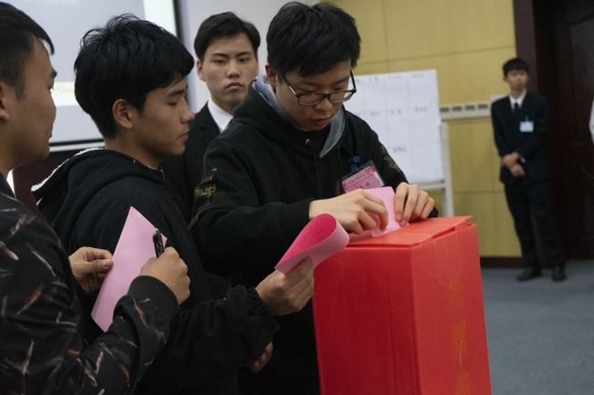 本次大会由团总支办公室姚吉主持,大会在庄严的国歌声中拉开帷幕,随后由校团委书记蔡林洁老师致开幕辞,蔡老师围绕着“坚持正确的政治方向”、“以同学为本,反映同学意愿”、“完善学生会体制机制”这三项工作准则为中德工程学院学生会工作提出了要求与期望,并祝愿中德学生会能成长为一个与党的期望、团的要求、学生需求相适应的学生组织。大会听取了筹备工作报告,之后听取、审议并通过了《中德工程学院第十四届学生会工作报告》。报告指出在过去的一年中学生会在多方面积极开展活动,为学生构筑了一个服务他人、锻炼自我的舞台,并提出在今后的工作实践中不断完善学生会的各项制度与管理,秉承“感想、敢做、敢担当”的优良传统。在听取并审议通过《中德工程学院第十五次学生代表大会选举办法(草案)》、《中德工程学院第十五次学生代表大会总监票人、监票人、计票人、唱票人名单(草案)》后正式候选人围绕自身基本情况、工作成效及工作设想依次进行了竞选演讲,充分展示了自身综合素养及较强的工作能力。各学生代表秉承公开、公平、公正、惟贤惟德、能者居上的原则投上了自己神圣的一票。