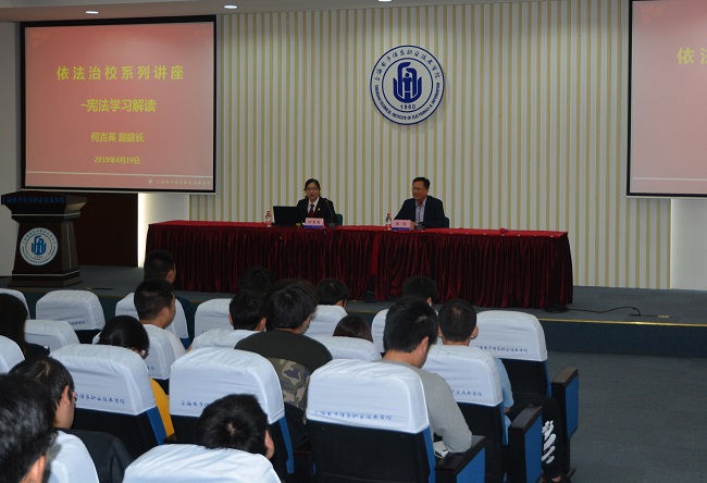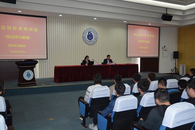 张涛副校长对何吉英副庭长到来表示热烈欢迎,指出依法治校是学校治理的基本理念,也是学校管理的基本方式;强调我校将深入落实《上海市教育委员会关于进一步做好本市依法治校(2016-2020年)创建工作的通知》精神,全面落实依法治校的工作任务,努力推进依法治教、依法治校的工作进程,争创“上海市依法治校示范校”;希望通过法治宣传教育,特别是宪法宣传教育活动,进一步弘扬法治精神,营造法治氛围,不断提高青年学生的法律素质,提升教育工作者的法治观念和依法治理能力。(作者:马宏亮 文/沈书景 图 供稿单位:校办)