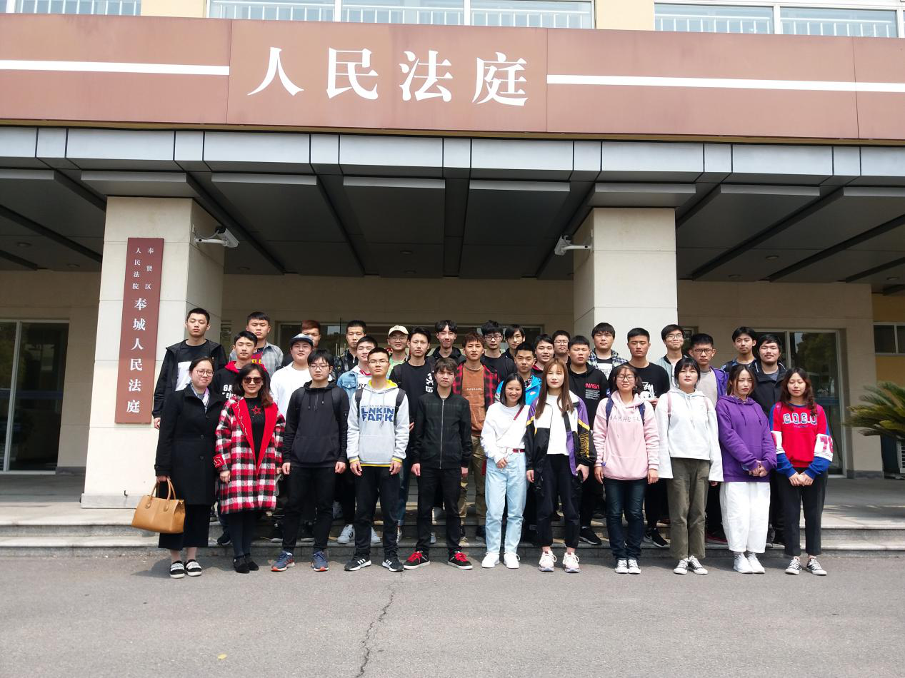 为深入学习党的十九大精神,深入贯彻全面依法治国基本方略,引导大学生树立法治意识,维护宪法权威,弘扬法治精神,推动大学生尊法学法守法用法,马克思主义学院朱佳与向宏霞两位老师于4月12日,组织部分学生赴奉贤区人民法院奉城法庭旁听案件,受到了奉城法庭庭长江法官和助理陈法官的热情接待。