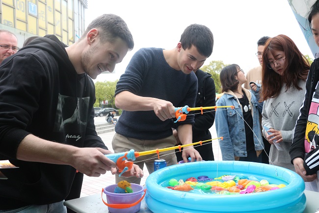 游园活动内容丰富多彩,形式多种多样。“珠联璧合”,通过让同学们分组列队夹弹珠竞速,让大家体验竞争与合作带来的压力与快乐;“斗”沙包是同学们两两合作,一人蒙上眼睛在另一队友的指挥下投沙包,进行一场别开生面的大比拼,激发了大家的思维创新能力和团体合作精神;“手工泥塑”,同学们以黏土为原料,用手工捏制成形,表达出自己的心声,同时培养了动手能力;“画房子”让同学们通过绘画创作过程,利用非言语工具,将潜意识内压抑的感情与冲突呈现出来,并且在绘画的过程中释放压力,了解自己、欣赏自己,并与自己的作品合影留念;还有“心有灵犀”、“一箭穿心”、“桌面保龄球”、“叠塔楼”、“旋转好心情”、“池塘寻欢”、“文武双全”等十余种主题游戏,吸引了众多同学和老师参与。这些活动既新颖有趣,又有心理建设功能,让同学们在放松身心、排解压力的同时,也加强人际沟通、促进集体建设。