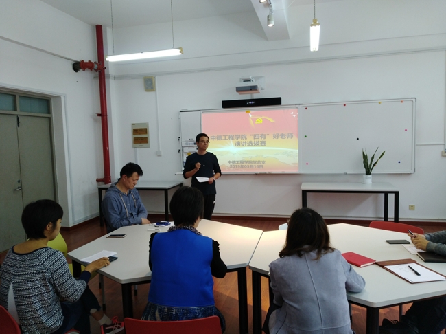 为深入学习贯彻习近平新时代中国特色社会主义思想和党的十九大精神,落实全国教育大会精神和“三圈三全十育人”工作体系要求,坚持立德树人根本任务,加强师德师风建设,建设高素质教师队伍,以优异成绩迎接新中国成立70周年,5月16日,中德工程学院党总支在C105举办“四有”好老师演讲比赛选拔赛。