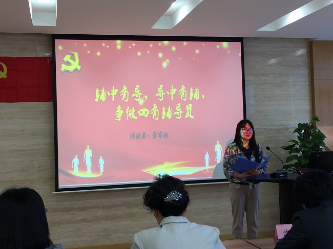紧接着,演讲比赛正式拉开序幕,来自通信与信息工程学院不同岗位的6名选手先后登场、各展风采。瞿卫燕老师的《做一名幸福的仁爱之师》、王艳芳老师的《我的教育梦》、季华瑛老师的《辅中有导,导中有辅,争做四有辅导员》、贺琪老师的《教育——国之大计,德育——育人之本》、李婷婷老师的《辅导员——学生的筑梦人》、瞿广峰老师的《成就学生,幸福自己》,均紧密结合各自的本职工作,分别从不同角度、不同层面阐释了“四有”好老师的具体内涵,坚定地表明了立志奉献三尺讲台的决心,深情抒发了为教育事业奋斗终生的铮铮誓言。