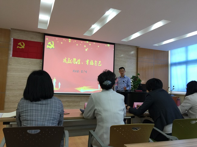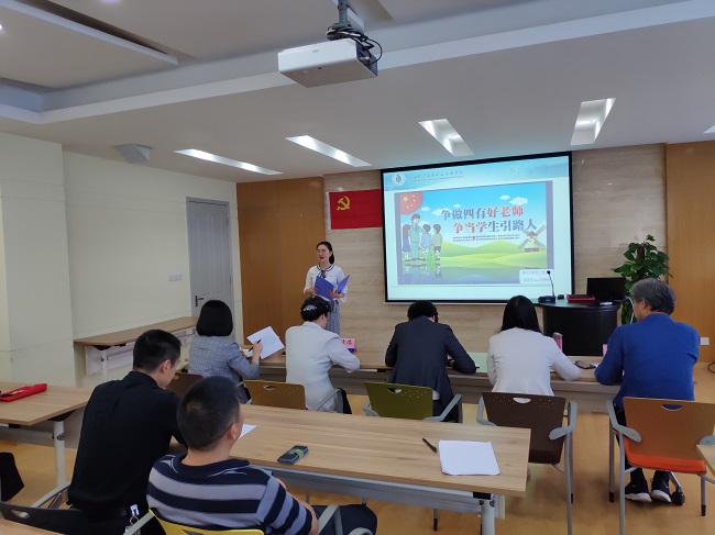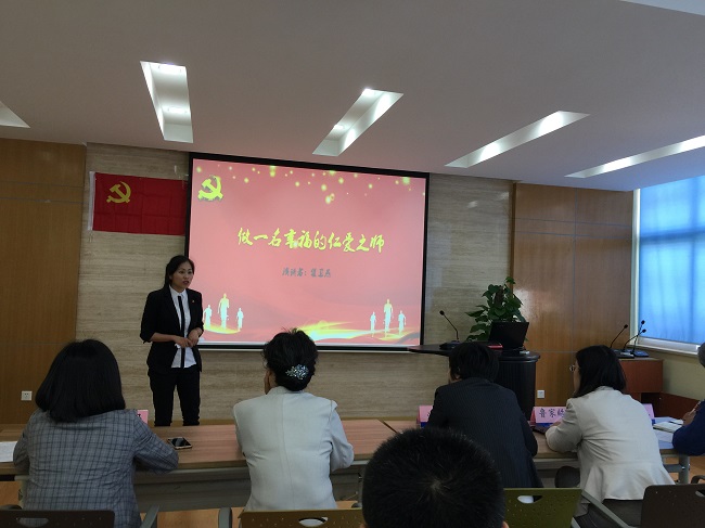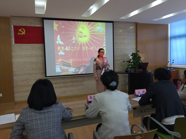 为深入贯彻落实党的十九大精神和全国教育大会精神,落实立德树人根本任务,加强师德师风建设,培养高素质教师队伍,激励教师争做“四有”好老师,5月20日下午,通信与信息工程学院教工第一党支部在A207开展“不忘初心 立足岗位 争做‘四有’好老师”暨“四有”好老师演讲比赛主题党日活动。比赛特邀党委组织部副部长沈莉、宣传部副部长张双双、教师工作部副部长鲁家皓、外语学院党总支副书记吴亚人以及学校特邀党建组织员盛靖琪老师担任评委。各二级单位党总支代表、通信与信息工程学院全体党员及教工代表共同参加了活动。