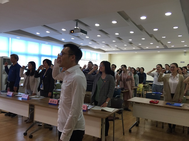 活动最后,全体人员起立,面对鲜红的党旗,举起右拳,在领誓人马光军同志的带领下,重温教师誓词,提振“精气神”,再铸新时代师德、师风、师魂。(供稿单位:通信与信息工程学院党总支)
