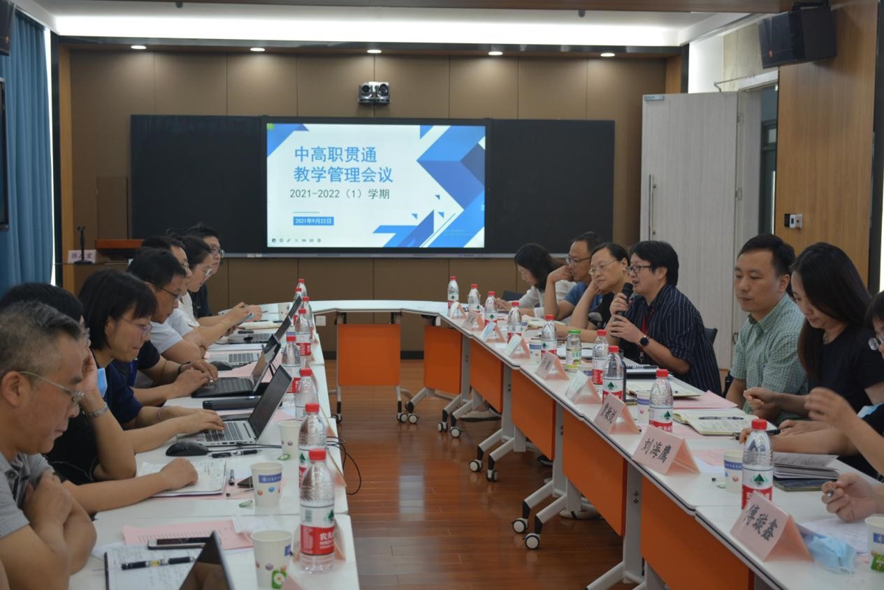 教务处处长陈克明对上学期工作进行回顾,上学期我校联合各中职校编写了基础学科课标,期中进行了教学检查,期末举行了基础学科联考和校长联席会。教务处副处长周玉霞与各中职校相关负责人商定了本学期期末统考事宜。教务处副处长王晟布置了本学期期中教学联合检查工作。教务处副处长王西贝表示本学期将新增中职阶段督导组听课。各中职校相关负责人对一些贯通合作事宜进行了交流讨论,特别对教学评价、联合教研开展频次等提出了各自看法,同时也积极为贯通教学质量提升建言献策。