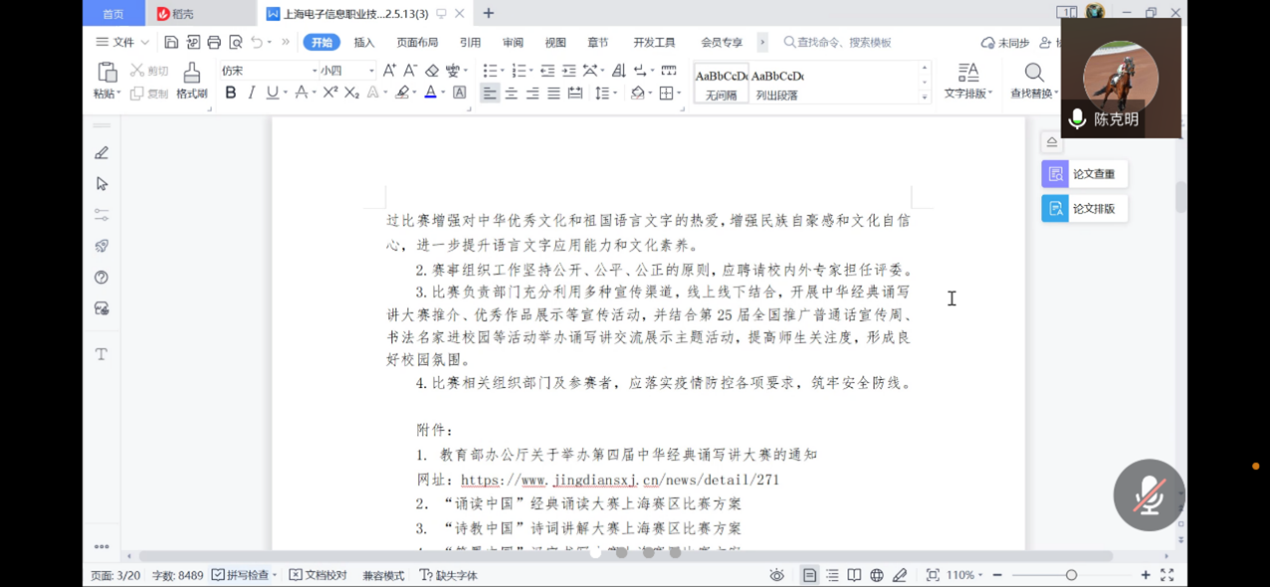 为贯彻落实全国语言文字会议及市语言文字会议精神,全面深入实施中华经典诵读工程,校语委办通过线上方式于5月14日召开2022年语言文字工作专题会议。学校党委副书记、校长赵坚,学校党委副书记、副校长张涛及校语言文字工作委员会全体委员参加了会议。会议由副校长方林中主持。