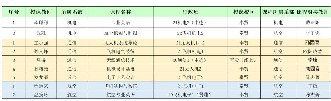 在确定新教师所承担的教学任务之后,各系迅速安排了新教师的课程对接教师。暑假里,“老”教师就将所授课程的课程标准、教材、课程内容、教学方法等信息及时准确地传达到“新”教师处,以保证新教师打“有把握的仗”。教学