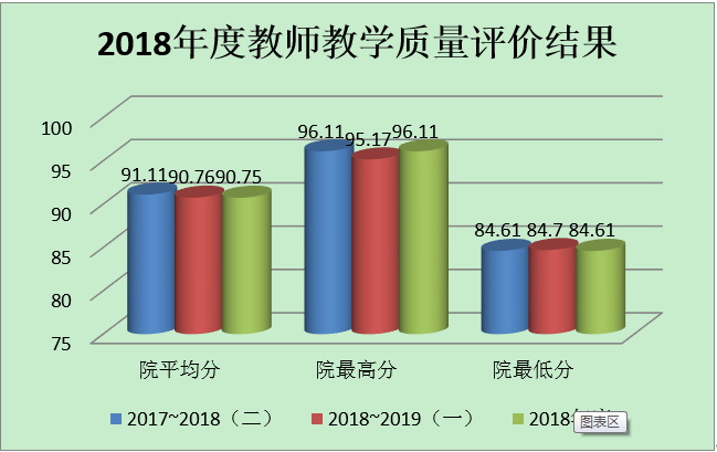 2018年度学院组织开展了4次学生网上评教,本学年学院共有246个班级的所有学生对473位教师进行教学测评,学生测评原始记录约23万余条;教务处组织各教学单位开展了2次同行、领导专家评教工作,汇总整理了本年度每位任课教师的学期和年度的学生、同行、领导(专家)三方评教数据,按4:3:3的权重分别计算出每位任课教师的学期与年度平均分及排名,并分发给各教学单位。