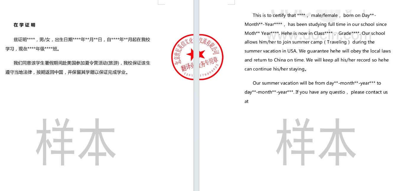 学生因办理出国事宜要办理中外文版学历证明(中文版学历证明办理要求见本规定第三条),外文版学历证明可先凭借学校开具的中文证明(加盖教务处公章)至翻译公司等机构办理相关语种翻译件(翻译件需加盖翻译章,且翻译件原件需与中文证明敲骑缝章);学生可持上述要求的翻译件原件及敲有骑缝章的中文证明到教务处加盖公章(详见翻译件样本)。学历证书翻译件可使用学历证书复件印敲章翻译(要求同学历证明翻译件一致)。